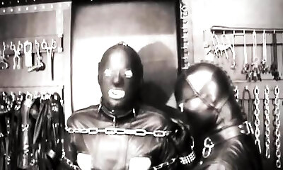 2 latex catsuit girl bondage and ball gagged