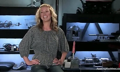 Kinky Blonde Playing With Fucking Machine. Onanism,anal