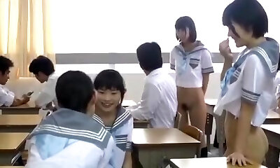 CMNF JAV teens naked in school with dressed teacher