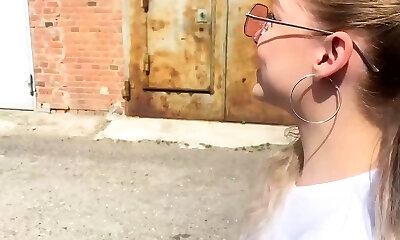 Schoolgirl tearing up on porch, jism squirted all over.