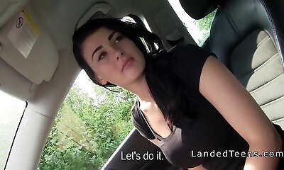 Romanian busty bitch Honey Satan is flashing boobs in public before sex for money