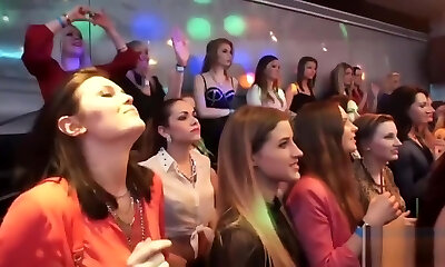 Slutty chicks are partying in the night club, getting drunk and having group sex adventures