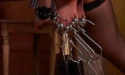 Heavy piercing CBR rings in this gimp MILF pussy Heidi