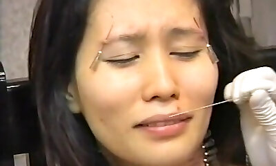 Piercing BDSM slave getting nipples and outer cooter pierced