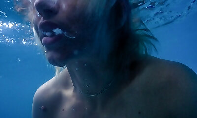 Naked underwater we masturbate each other off until we ejaculate in a cloud of sperm
