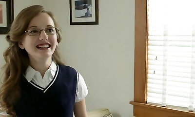 Super-cute teen with pigtails Mila gets drilled by aged teacher