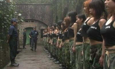 Naughty Asian women in prison camp with clean-shaven pussy nailing